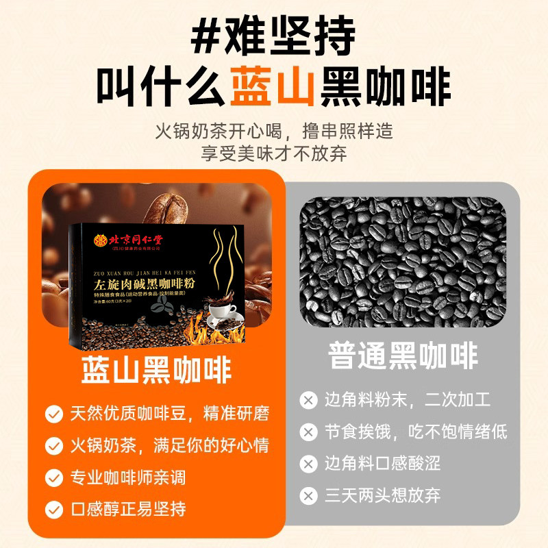左旋肉碱黑咖啡健身咖啡速溶美式冷热双泡0脂0蔗糖现磨提神加代谢