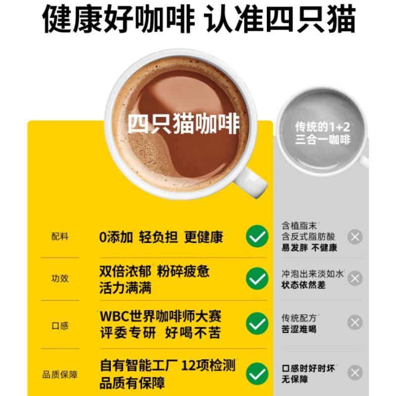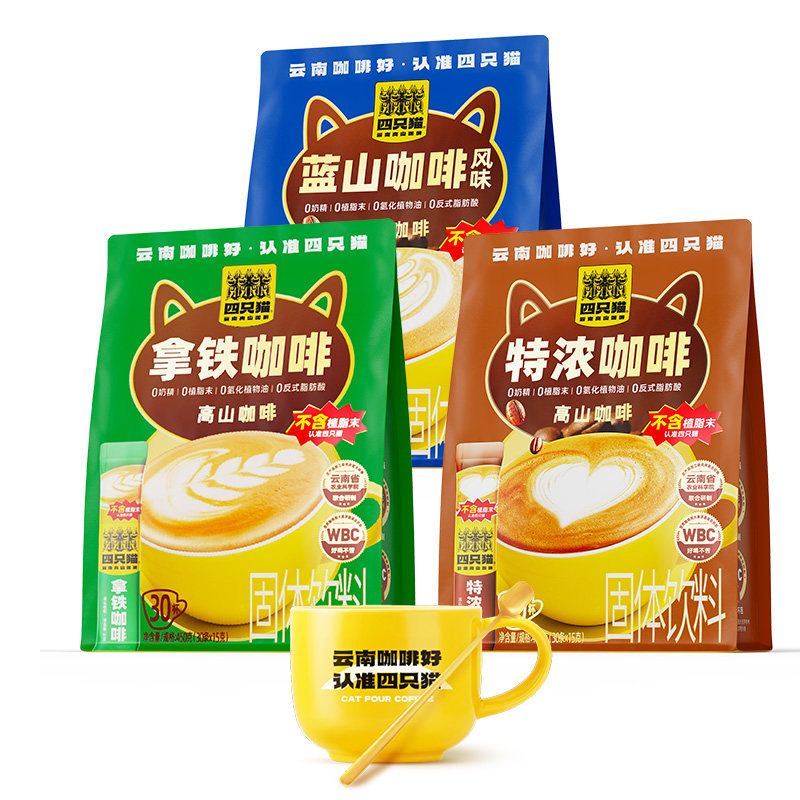 四只猫 0植脂末特浓蓝山拿铁咖啡三合一速溶云南咖啡学生提神送杯