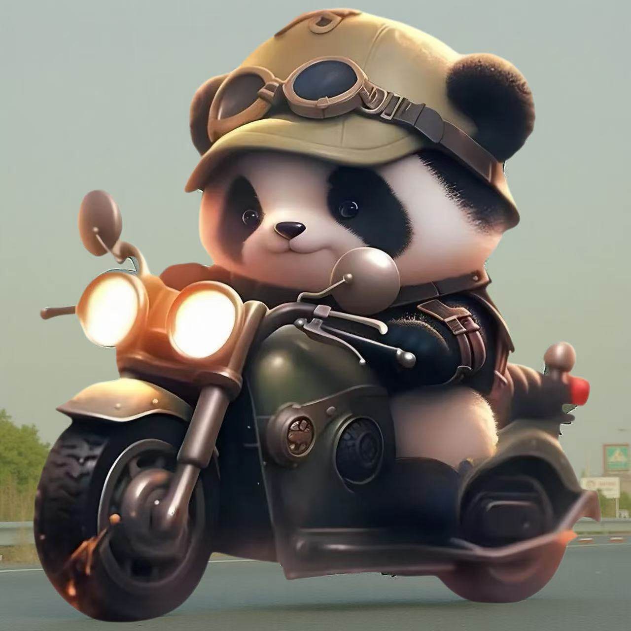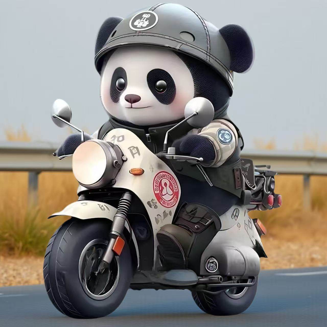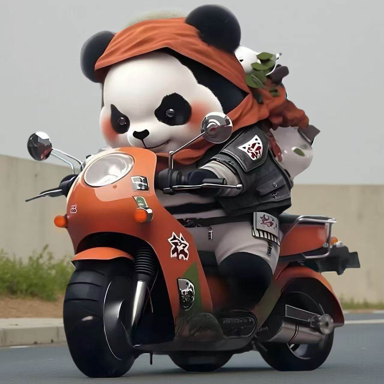 可爱机车熊猫汽车电动车贴纸划痕遮挡装饰贴室内墙面门窗卡通贴纸
