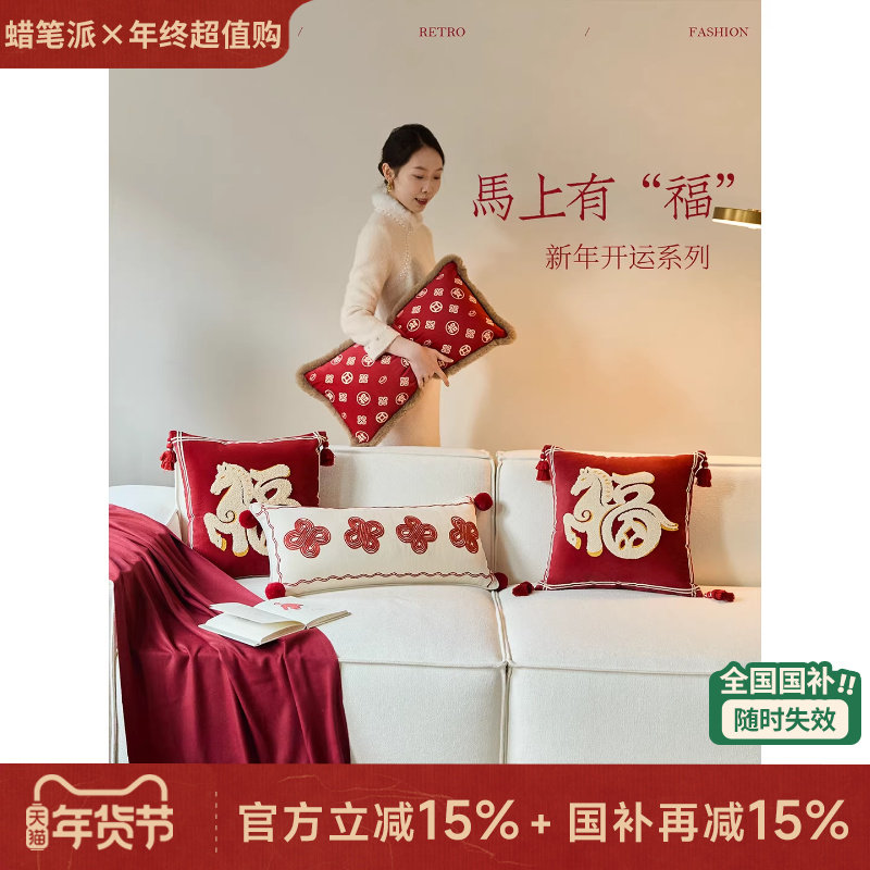 蜡笔派「马上有福」禧络抱枕红色新年现代轻奢沙发靠枕靠垫礼物