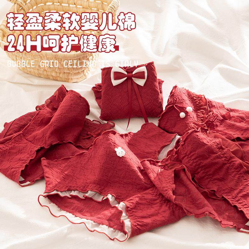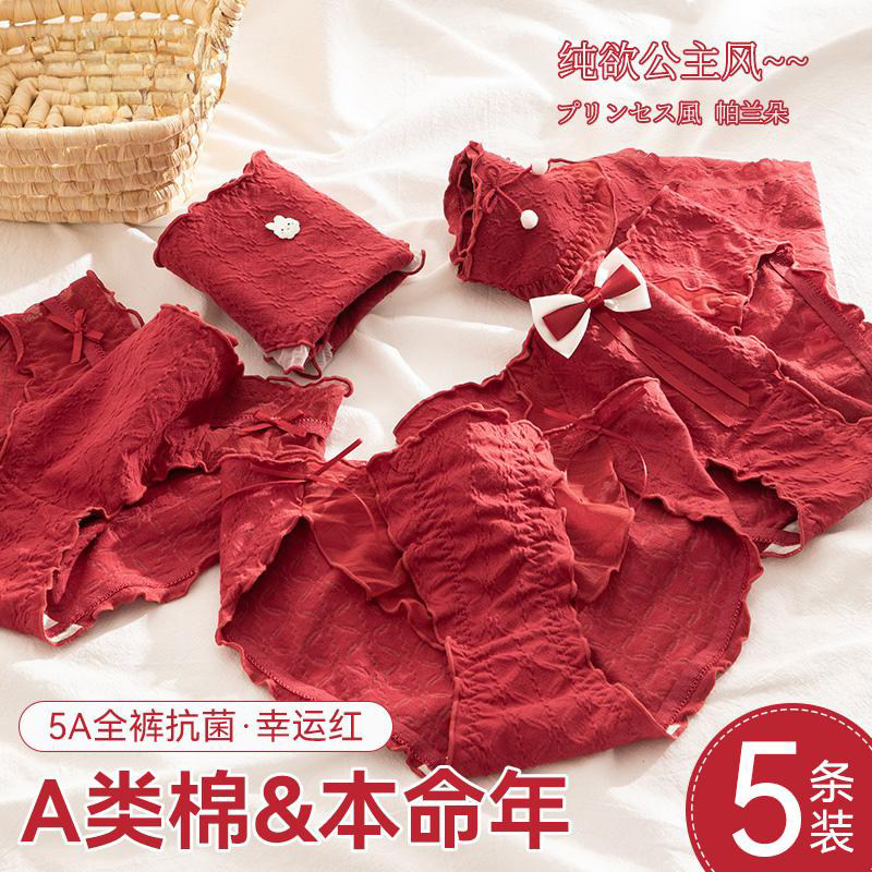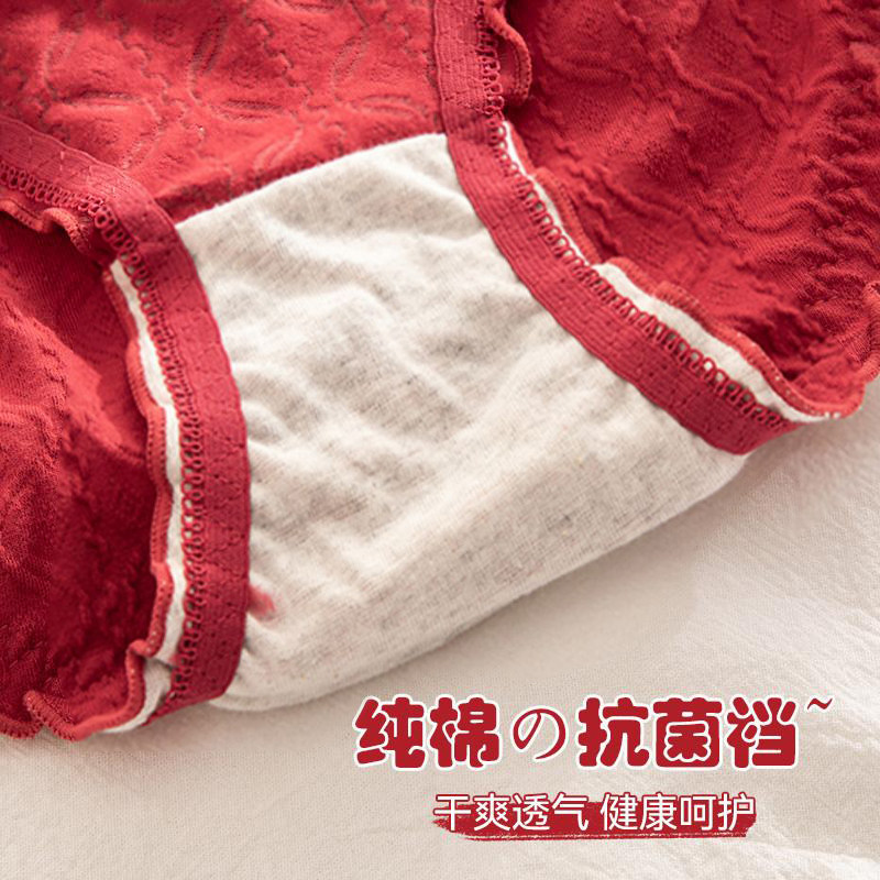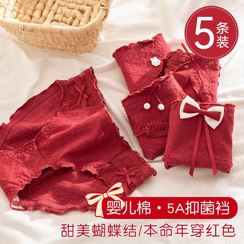 纯棉本命年红内裤女士抗菌裆结婚大红色蛇年新款喜庆三角裤头中腰