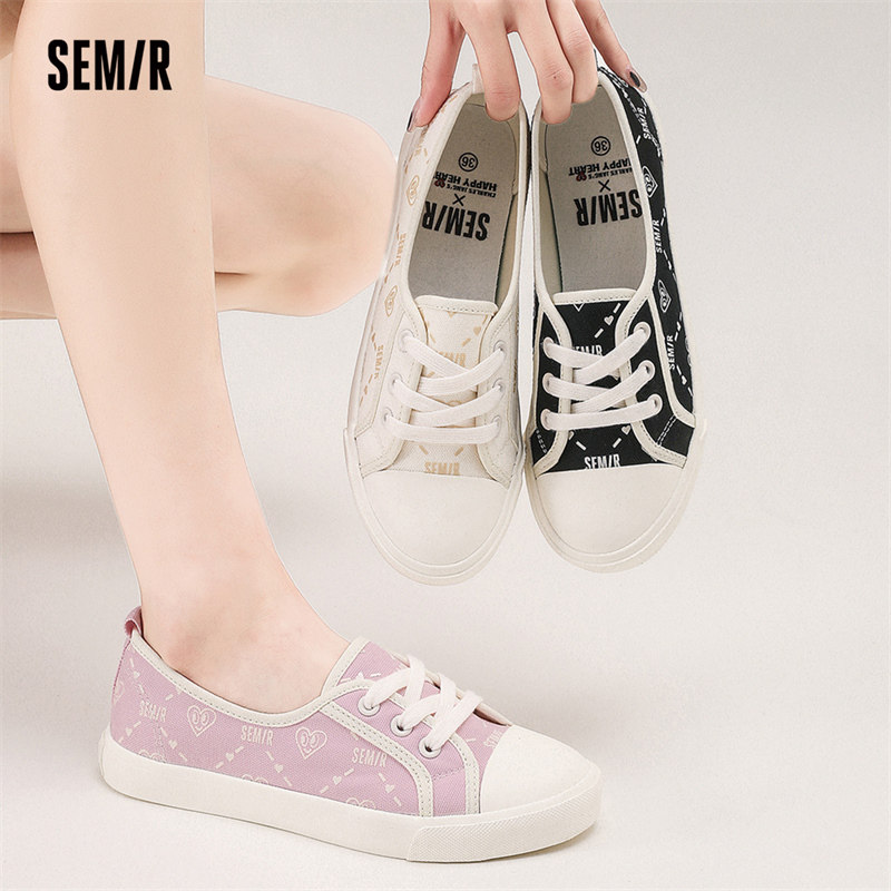 Semir女鞋浅口帆布鞋2025新款秋冬透气舒适轻便百搭平底休闲板鞋