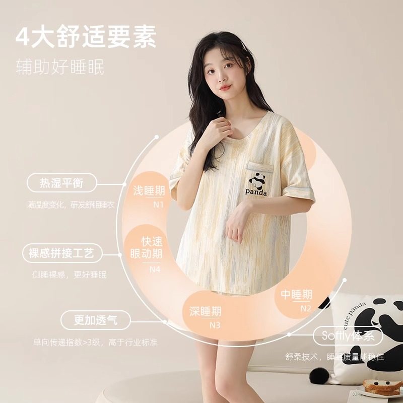 带胸垫睡衣女款夏季短袖短裤2025新款免穿内衣夏天薄款家居服套装