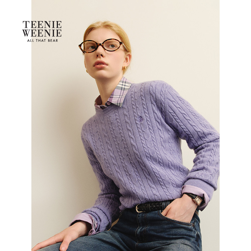 【四季绞花】TeenieWeenie小熊女秋冬季绵羊毛山羊绒毛衣针织开衫