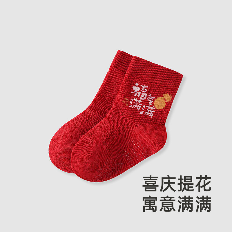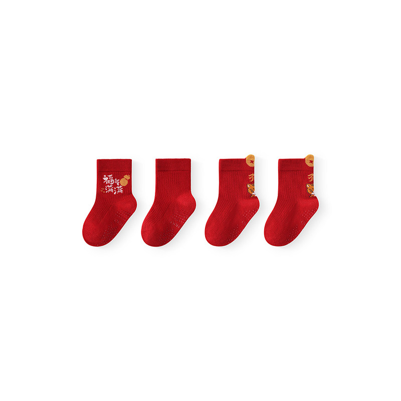 【商场同款】英氏婴儿宝宝袜子秋冬中筒红色新年过年儿童袜喜庆
