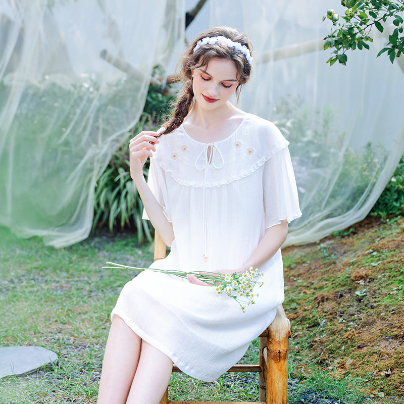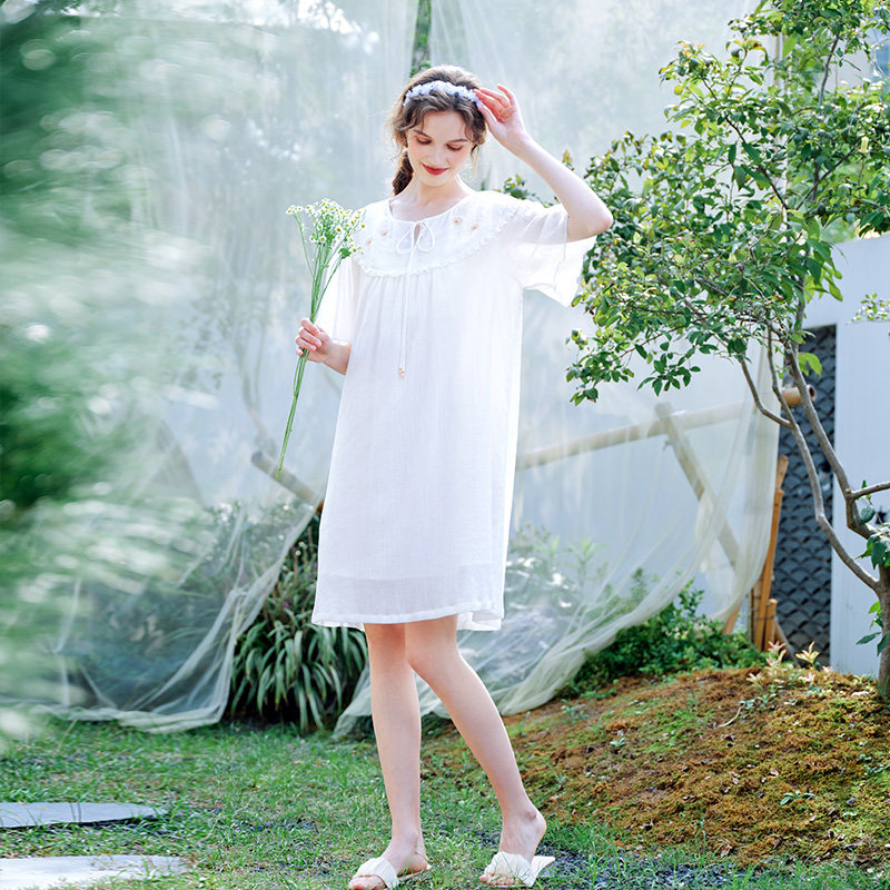 美标新款短袖纯棉睡裙女春夏薄款甜美公主风可外穿全棉家居服睡衣