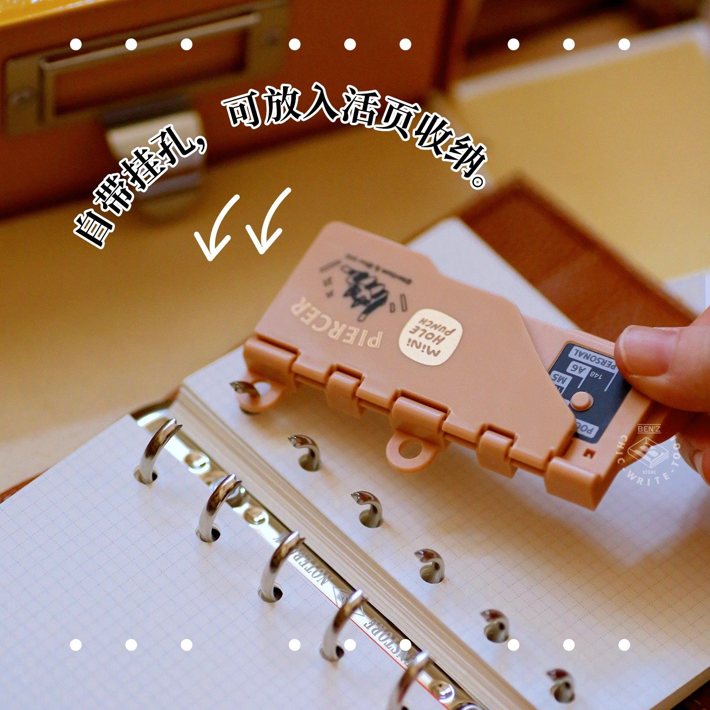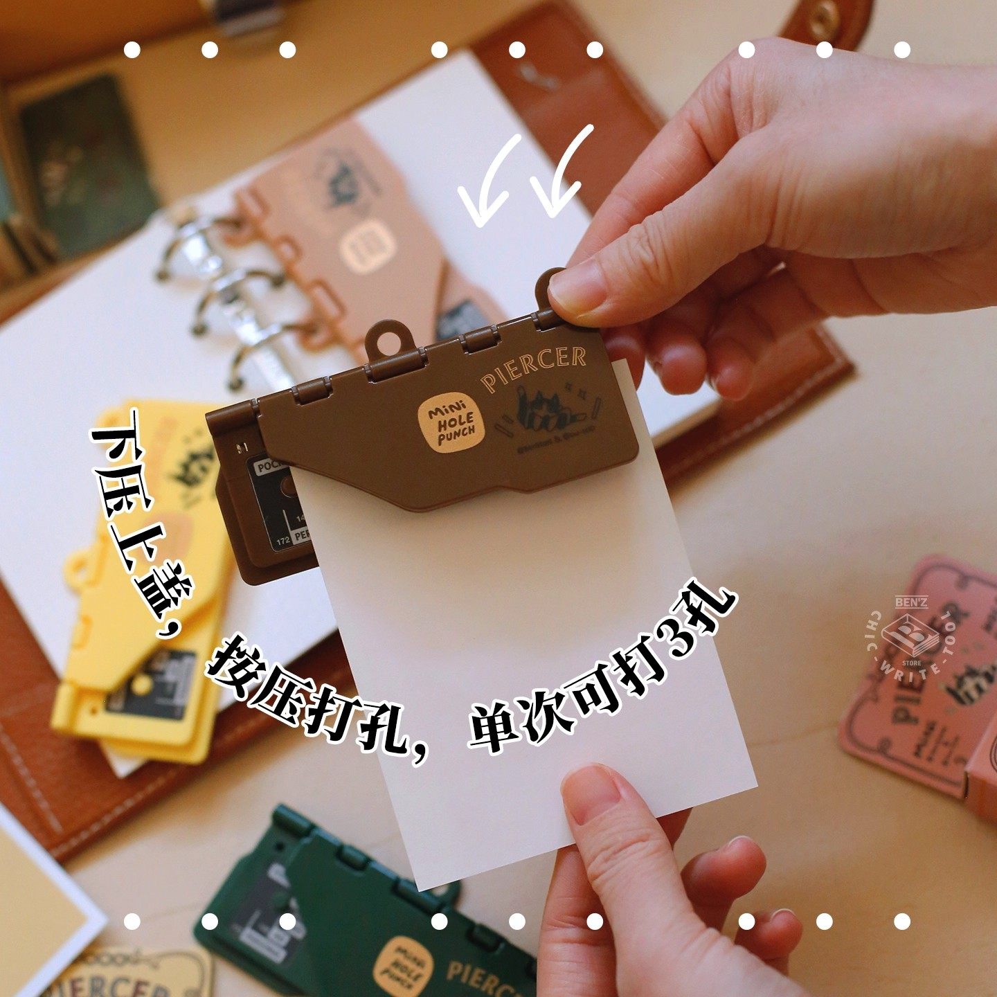 3孔卡片式打孔器迷你便携式打孔机学生用活页纸打洞器高颜值手账打孔机器可卡式小型打孔神器自带挂孔压孔机