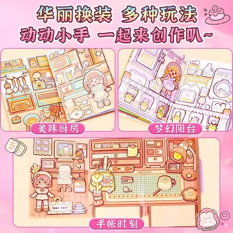 新款小麻薯安静书女孩免裁剪儿童贴纸手工diy材料包玩具古风江南游记小学生生日礼物宝宝益智专注力训练工具