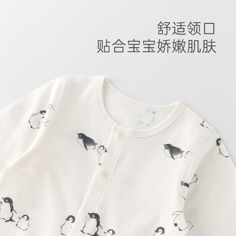 小猪大卫新生儿秋季保暖连体衣男女宝宝卡通印花中开夹棉爬服