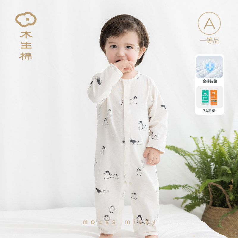 木生棉男女宝宝连体衣婴儿纯棉抗菌哈衣夏季薄款居家空调睡衣爬服