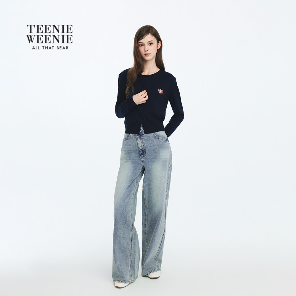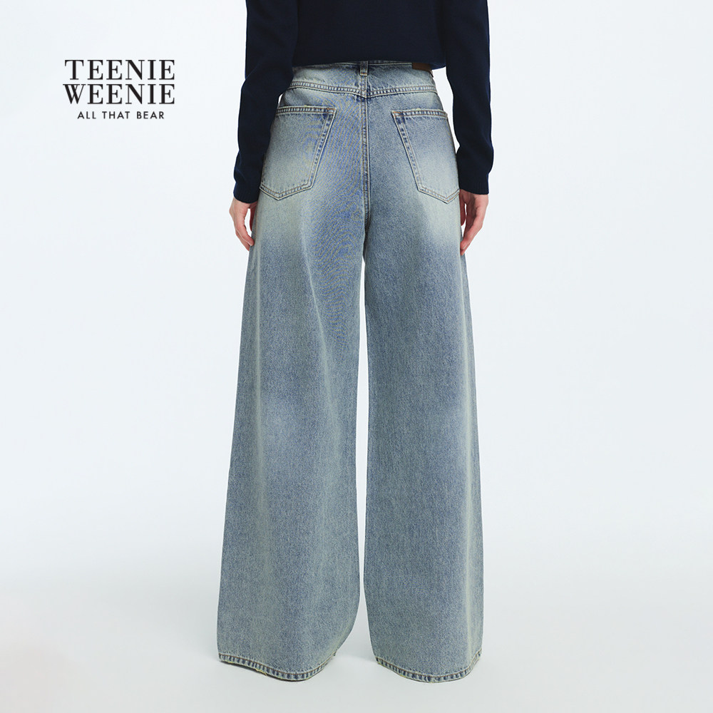 TEENIEWEENIE bearnova26年春季新款女装不对称斜门襟牛仔阔腿裤