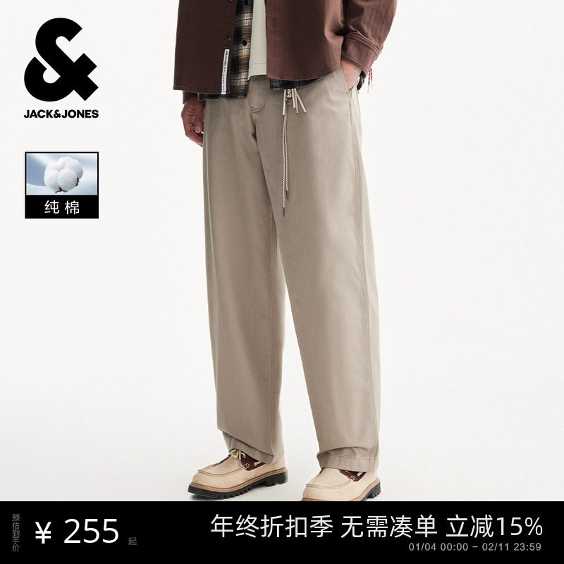 杰克琼斯秋季新款男装纯棉重磅棉廓形宽松休闲裤阔腿裤男士长裤子