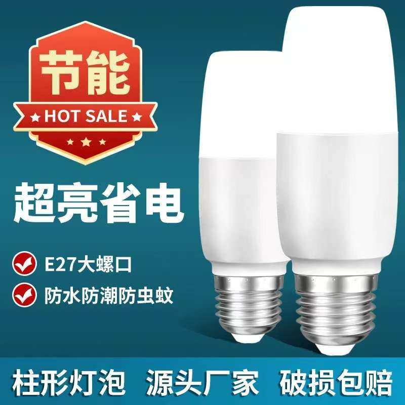 led灯泡超亮节能灯白光家用省电E27大螺口客厅室内灯照明圆柱形灯