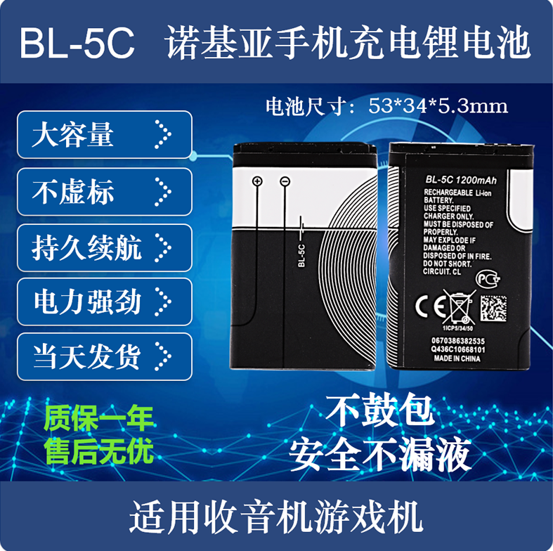 游戏机BL-5C锂电池收音机诺基亚3100 1110老年手机3.7V大容量原装