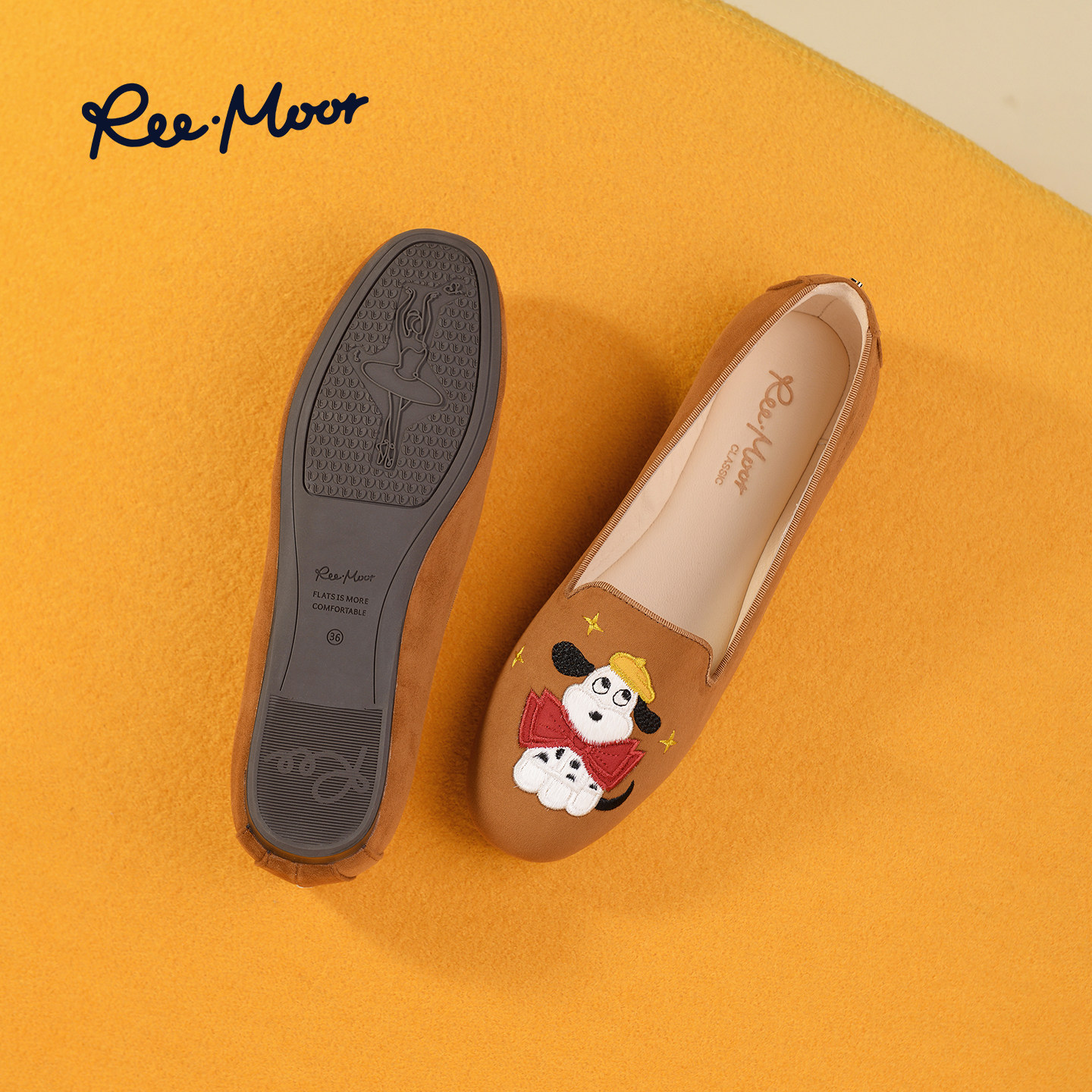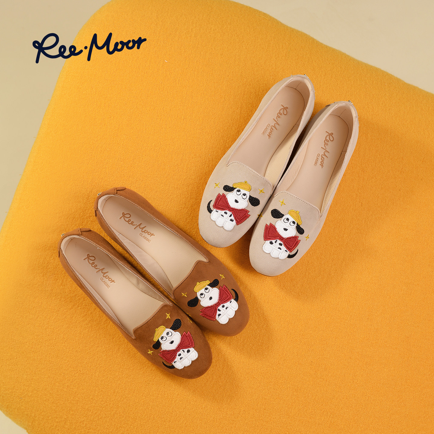 REEMOOR睿慕2025秋季新款圆头软底卡通刺绣一脚蹬乐福鞋豆豆鞋女