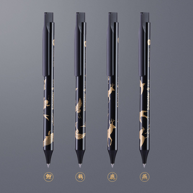 德国SCHNEIDER施耐德中性笔祥瑞限定菲尔Fave速干按动式水笔G2笔芯黑笔旗中国风舰锦鲤仙鹤官方店官网