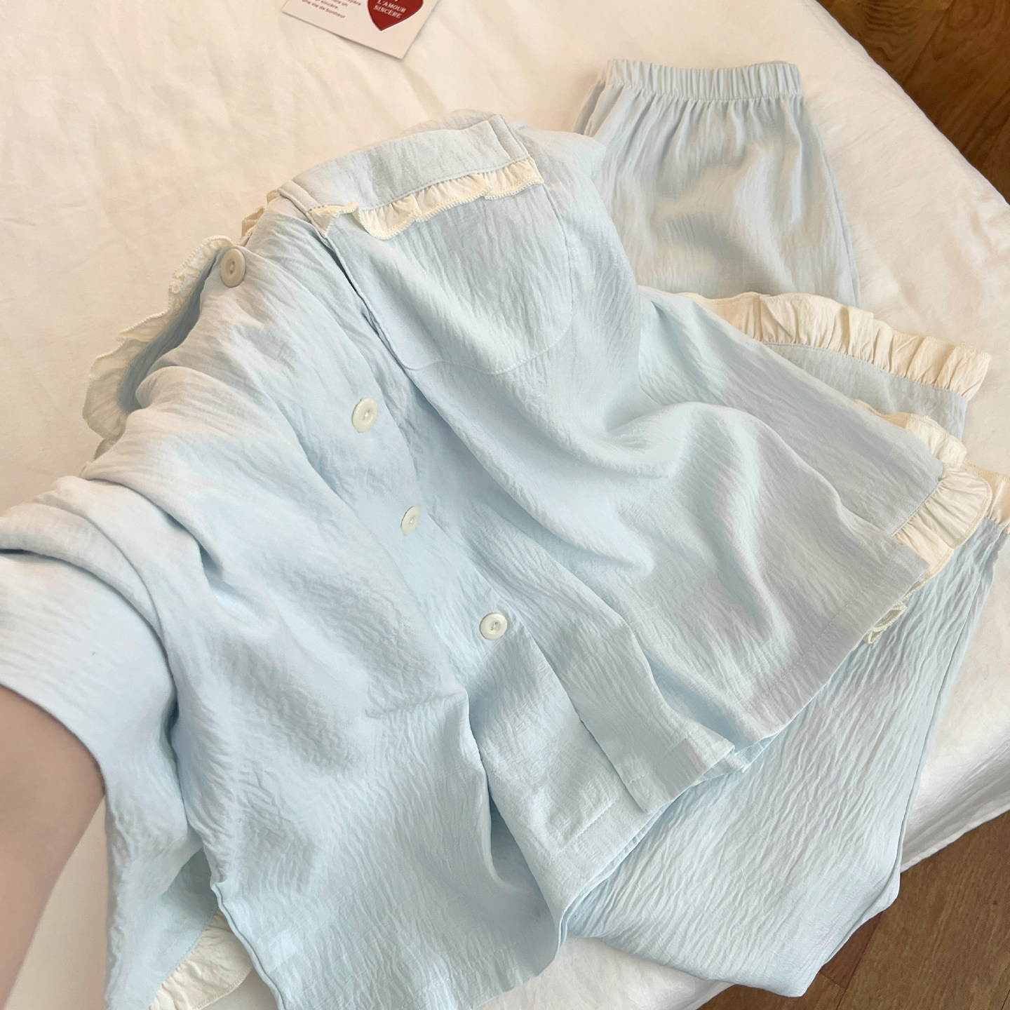 安比斯情侣睡衣舒适纯棉秋季女长袖男女同款休闲家居服套装可出门
