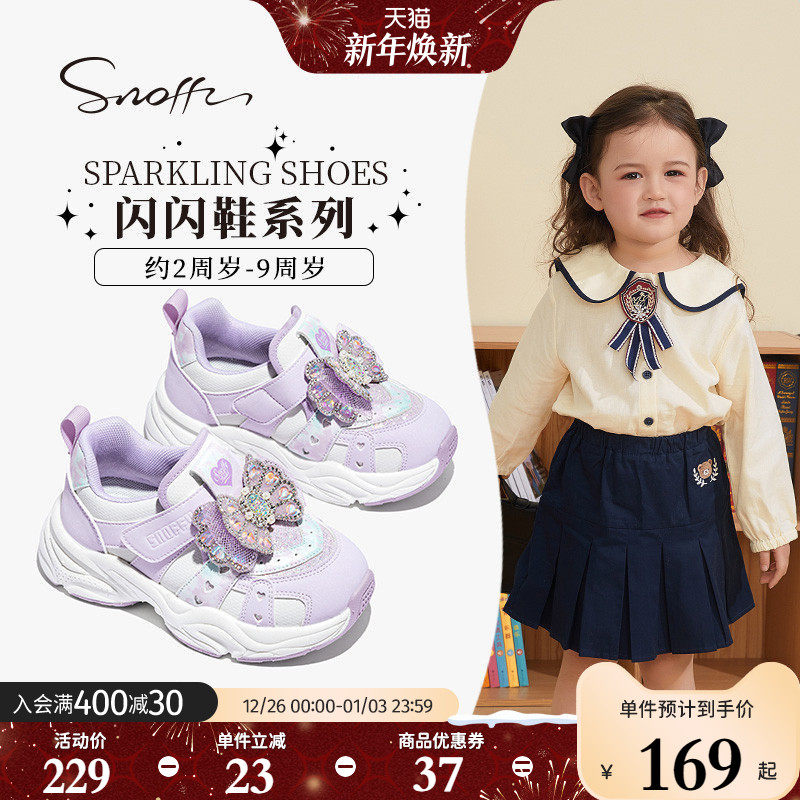 斯纳菲女童运动鞋秋季小女孩水晶公主鞋子户外学生校园百搭休闲鞋