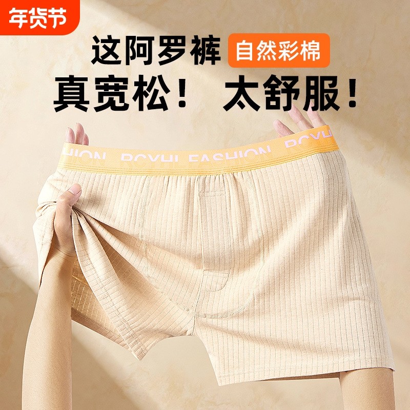 彩棉阿罗裤宽松特大内裤男士家居裤10A抑菌内档四角内裤平角抗菌
