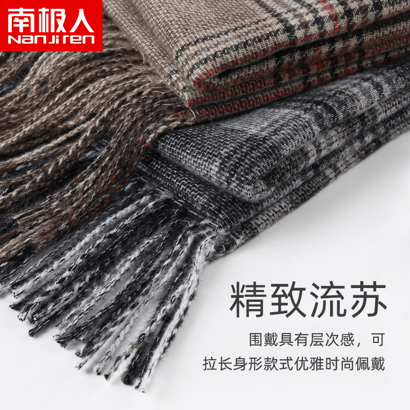 南极人韩版保暖围巾女冬季软糯格围脖男学生复古百搭高级感披肩A