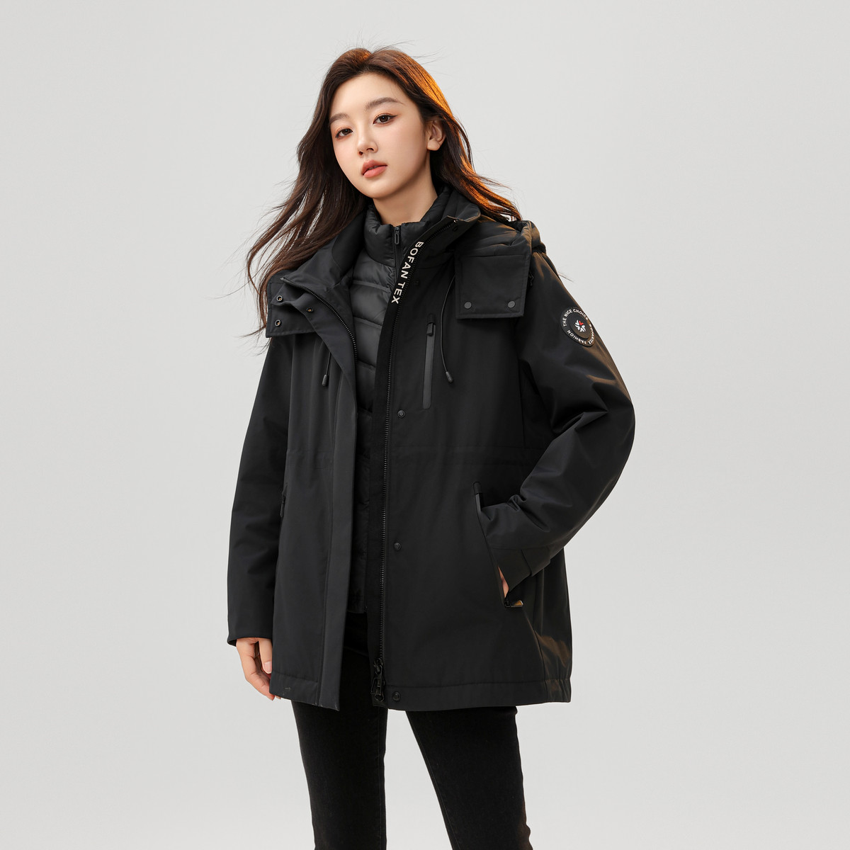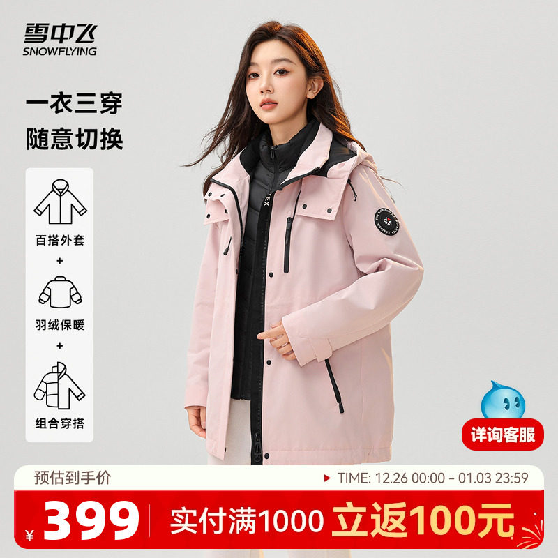雪中飞2025冬新款女士一衣三穿羽绒服户外运动工装冲锋外套保暖