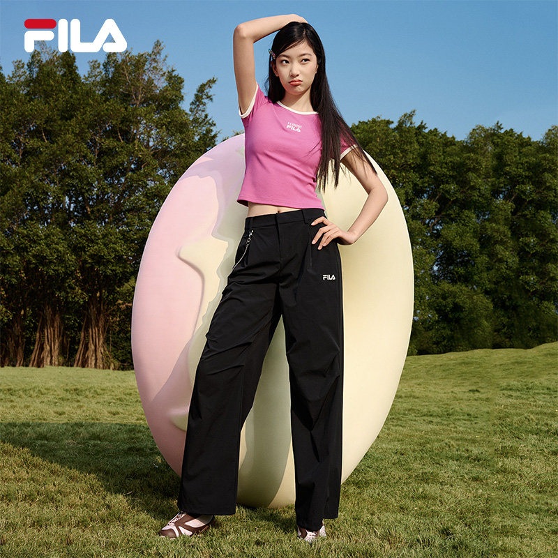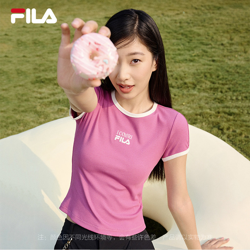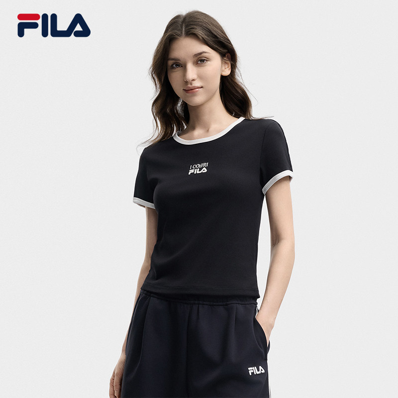 FILA斐乐短袖T恤女2026夏新款修身短款螺纹运动百搭复古撞色上衣