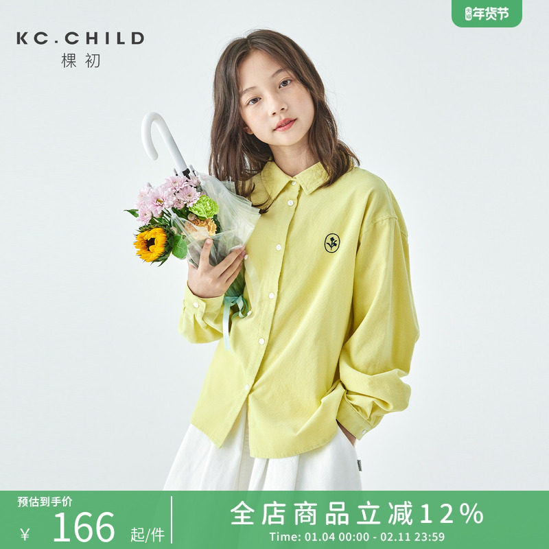 棵初2026年春亲子中大女童黄色灯芯绒衬衫纯棉复古微宽松休闲上衣