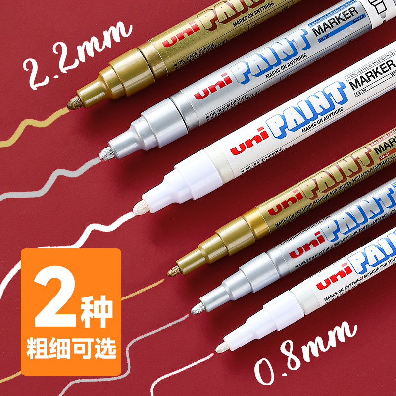 日本UNI三菱铅笔油漆笔/补漆笔/婚礼签名笔PX-20大头笔粗中工业不掉色防泼水白色金色银色金属镀金记号笔汽修