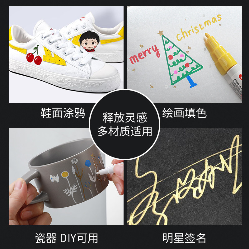 金万年针管型油漆笔0.7mm工业油漆记号笔细头款补漆金色红色白色