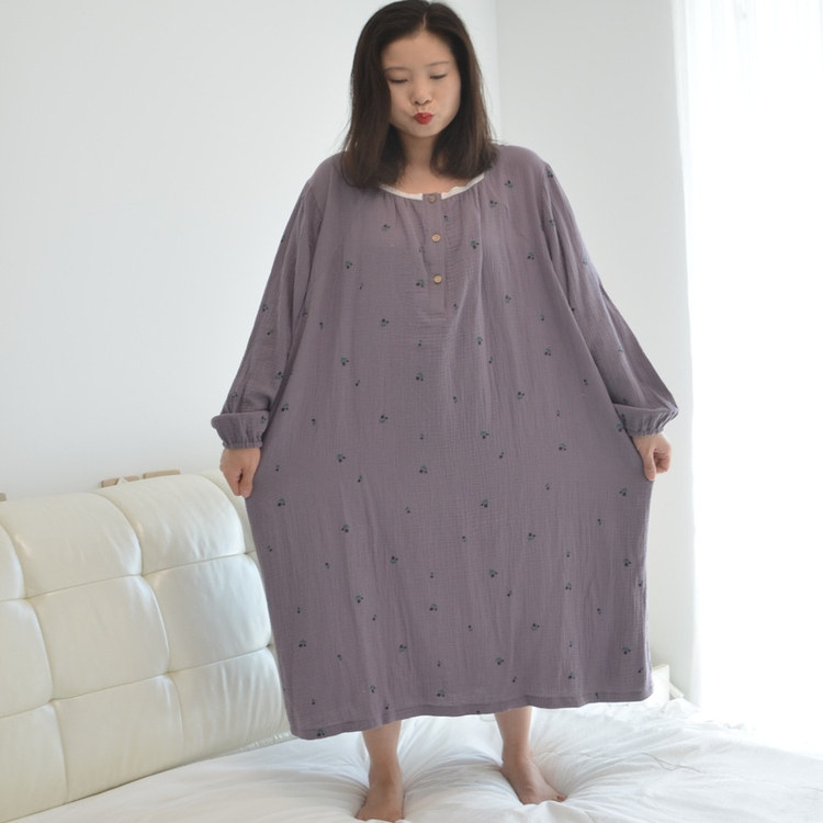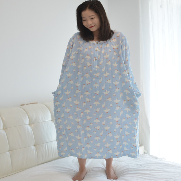 200斤加肥大码卡通大鹅睡裙女胖MM春秋长袖加长款纯棉纱孕妇睡衣