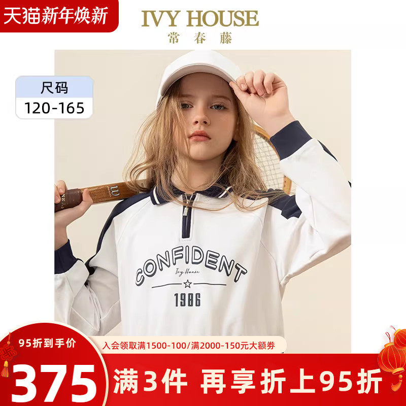 IVY HOUSE常春藤儿童装女童春秋季新款 针织POLO翻领连衣裙亲子装