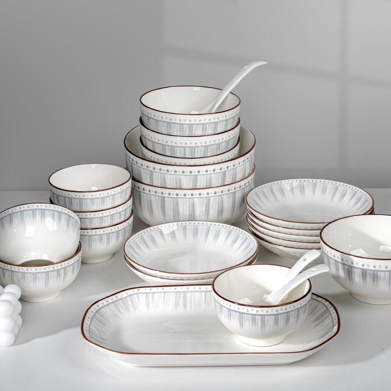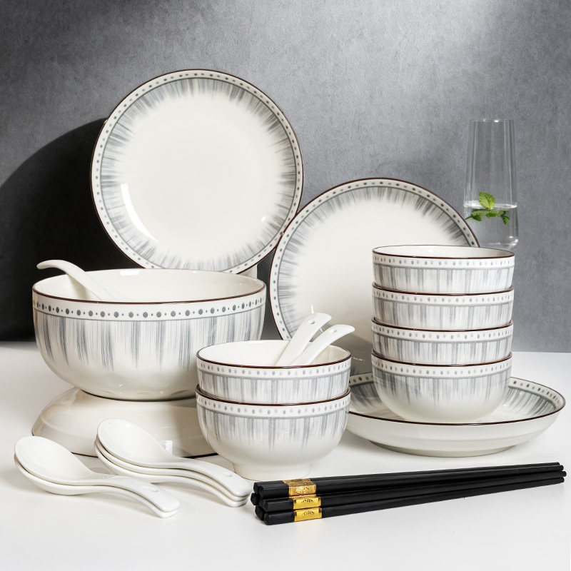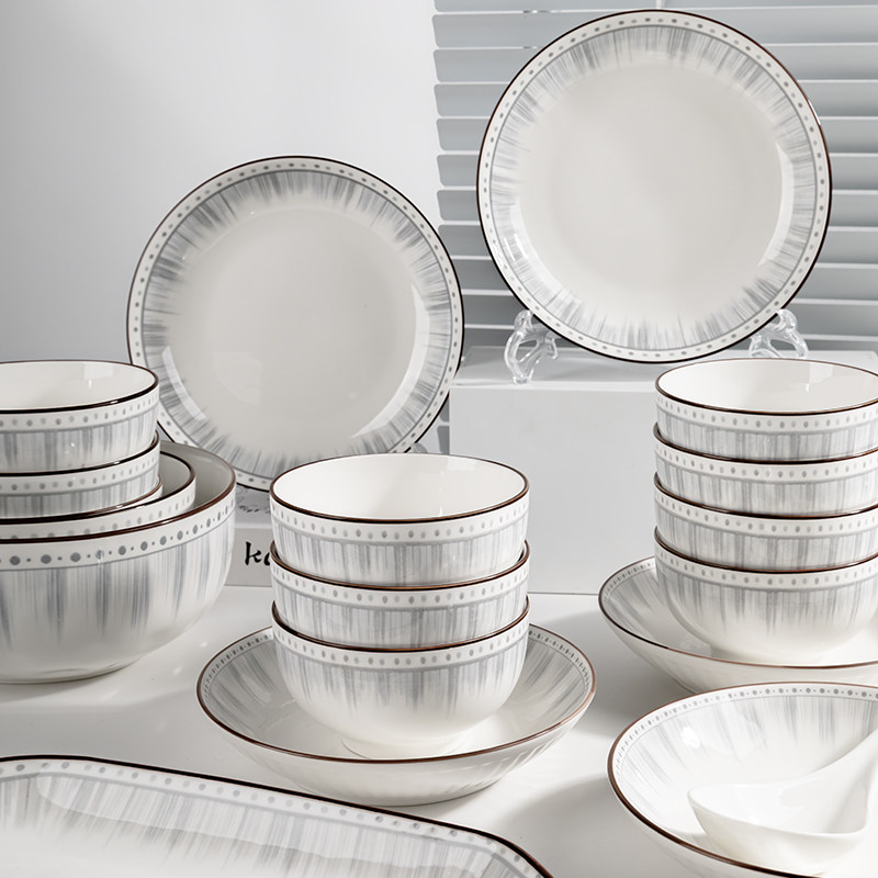 高级感碗碟套装家用2025新款简约碗盘乔迁碗筷陶瓷釉下彩餐具盘子