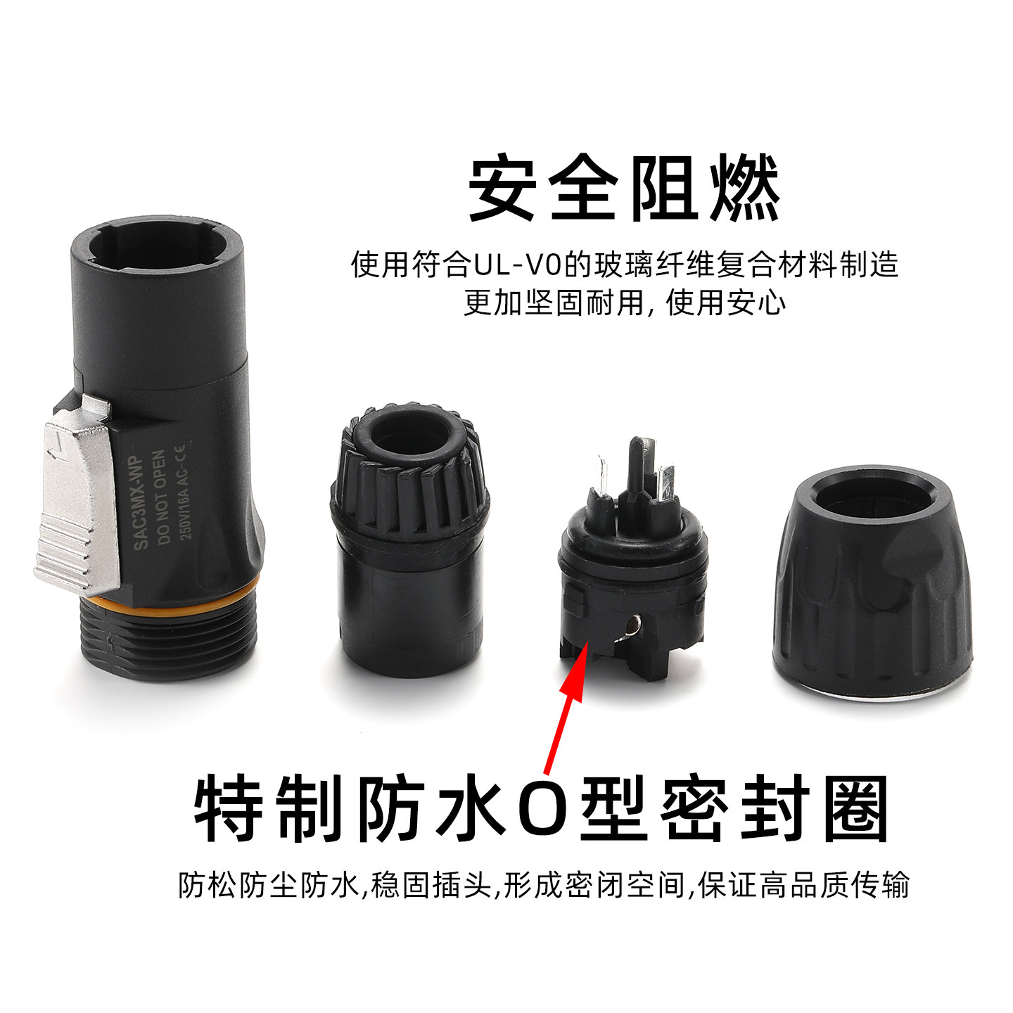 工业控制音响电箱LED大屏灯光3芯航空防水电源插头插座NAC3FX户外
