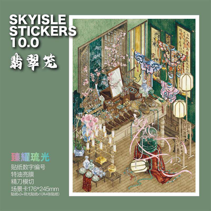 天空岛10.0翡翠笼造景贴纸缤纷都市琉璃盏解压微缩场景diy贴画