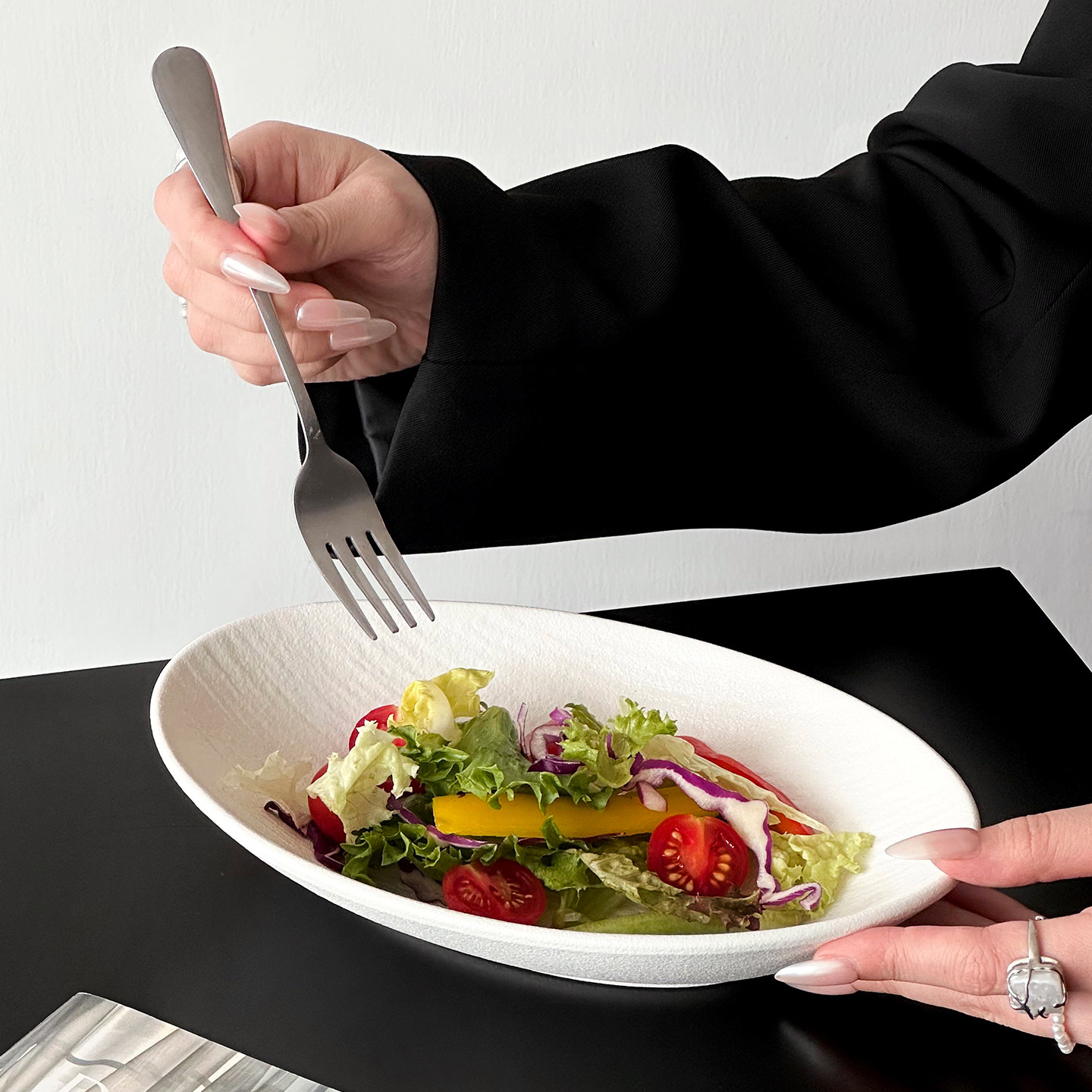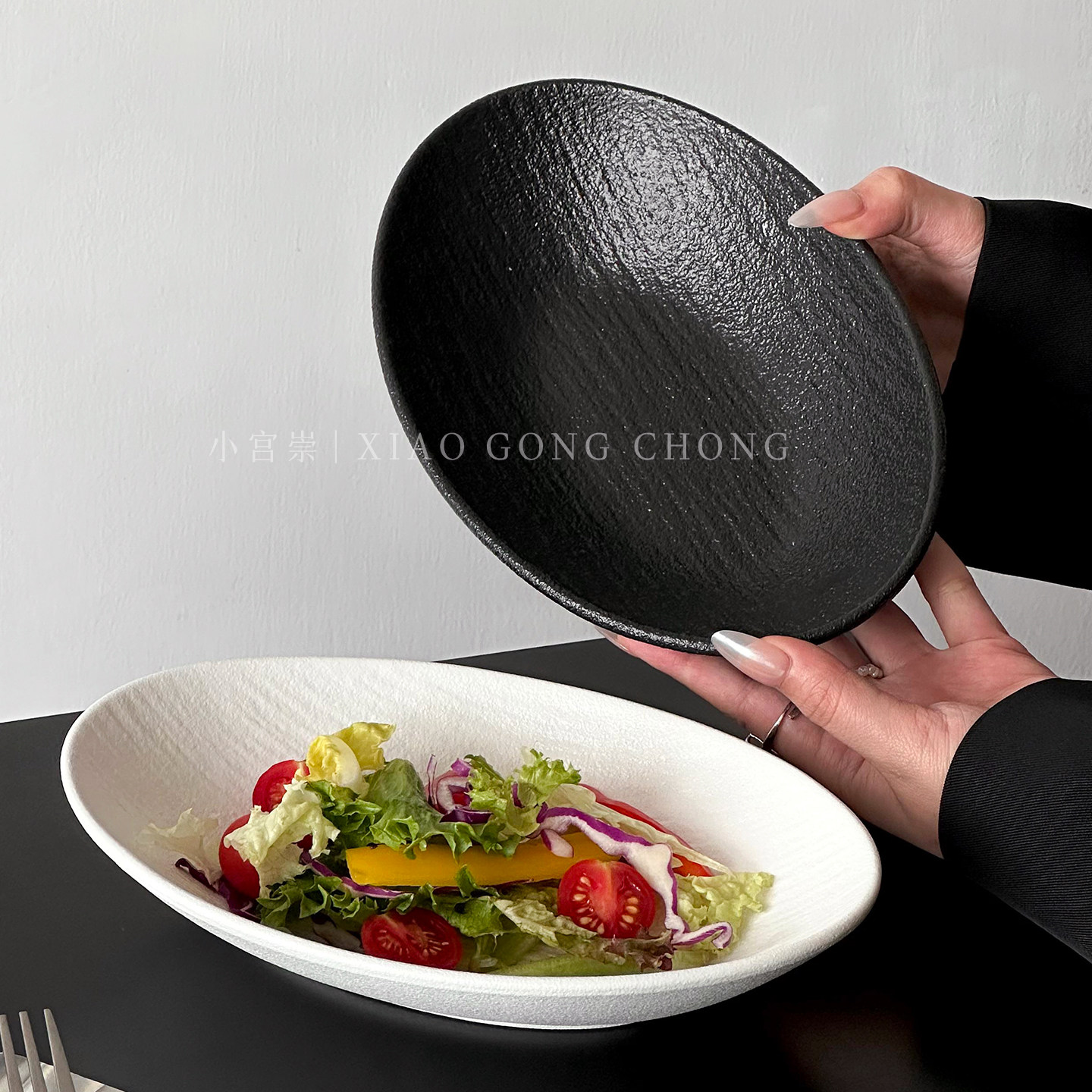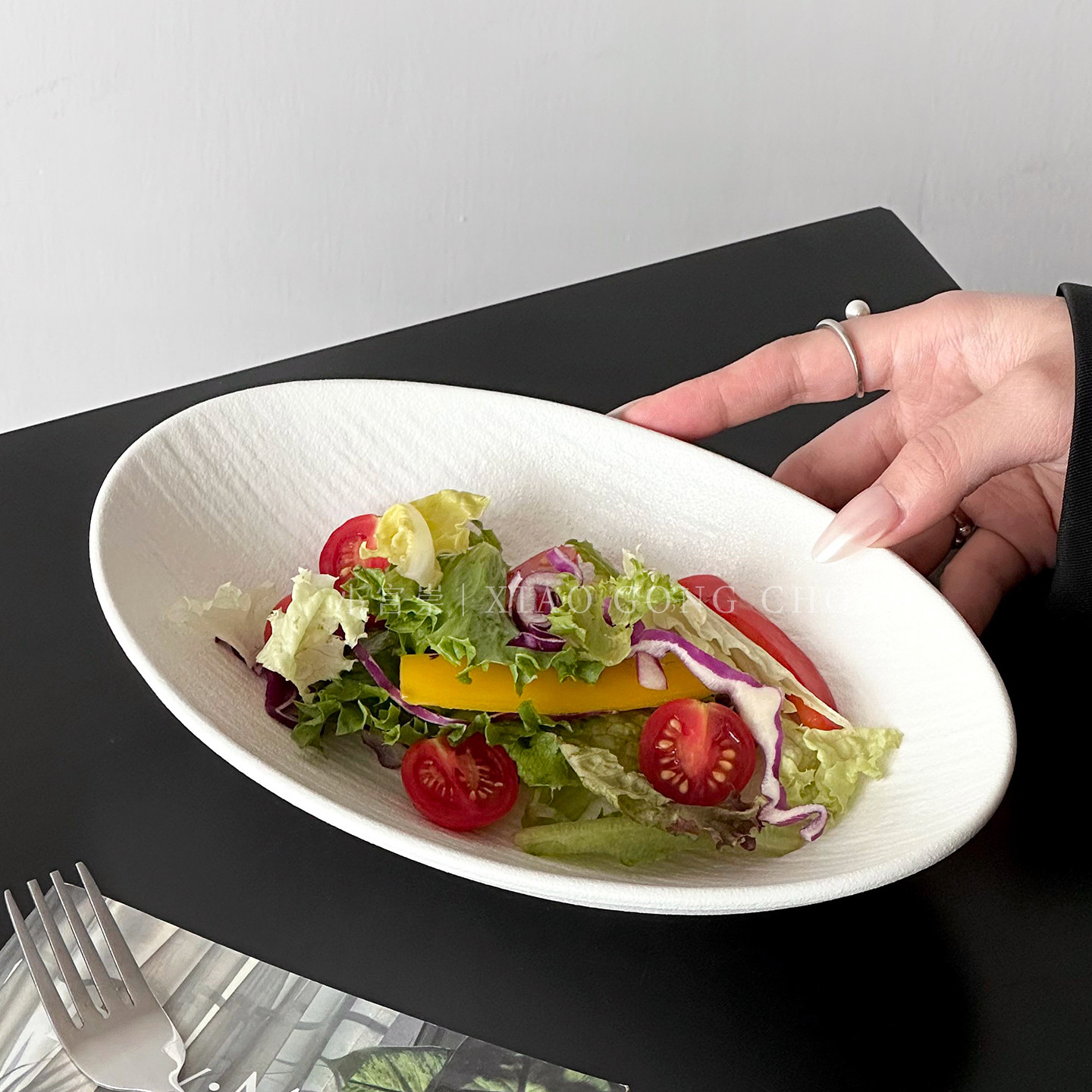 高级感椭圆碗沙拉碗创意船型陶瓷盘凉菜盘元宝深盘意面碗家用餐具