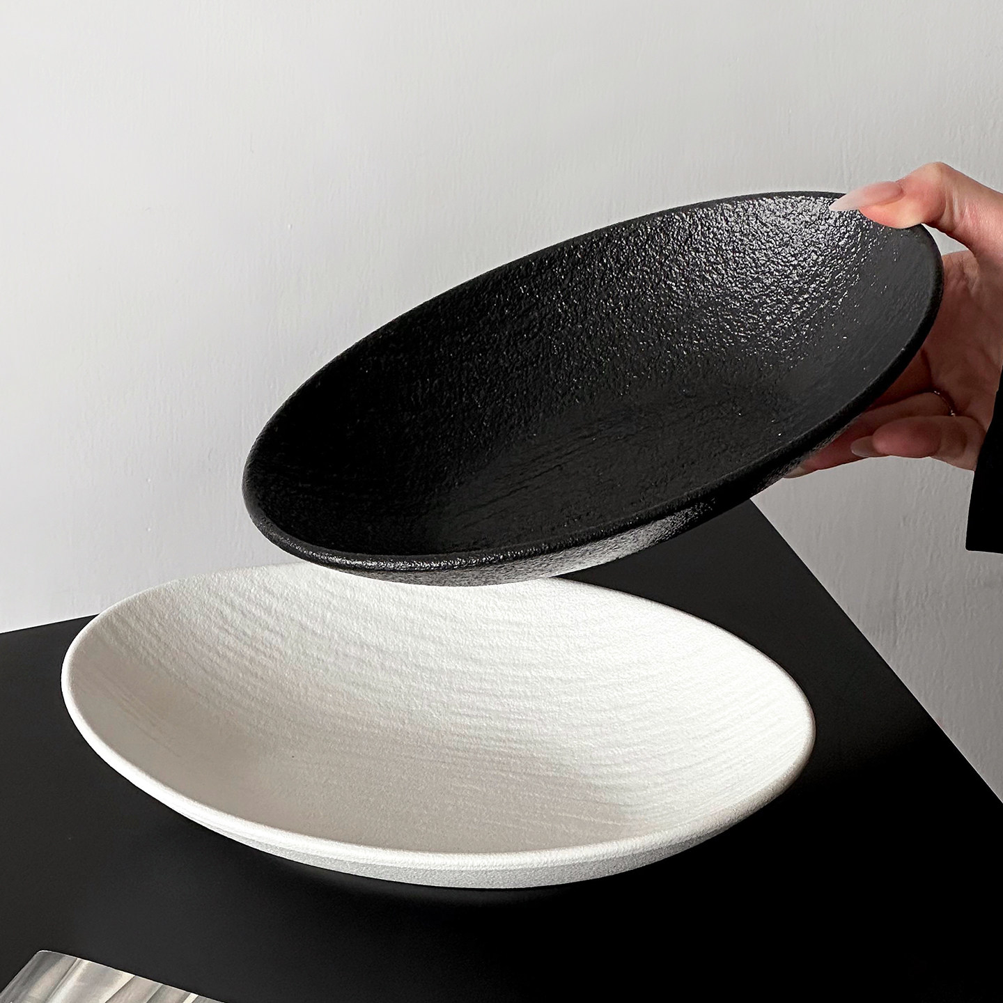 穆尼 泼墨ins风餐盘沙拉碗家用一人食餐具深盘日式盘子高级感汤盘