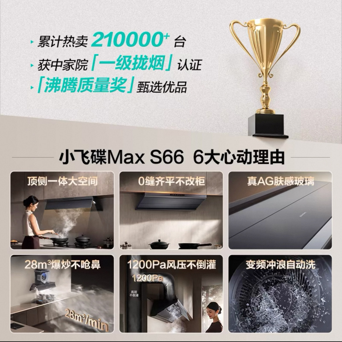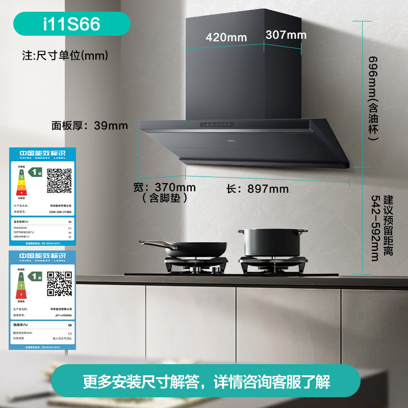 华帝小飞碟Max油烟机燃气灶套餐S66烟机燃气灶三件套装官方旗舰店
