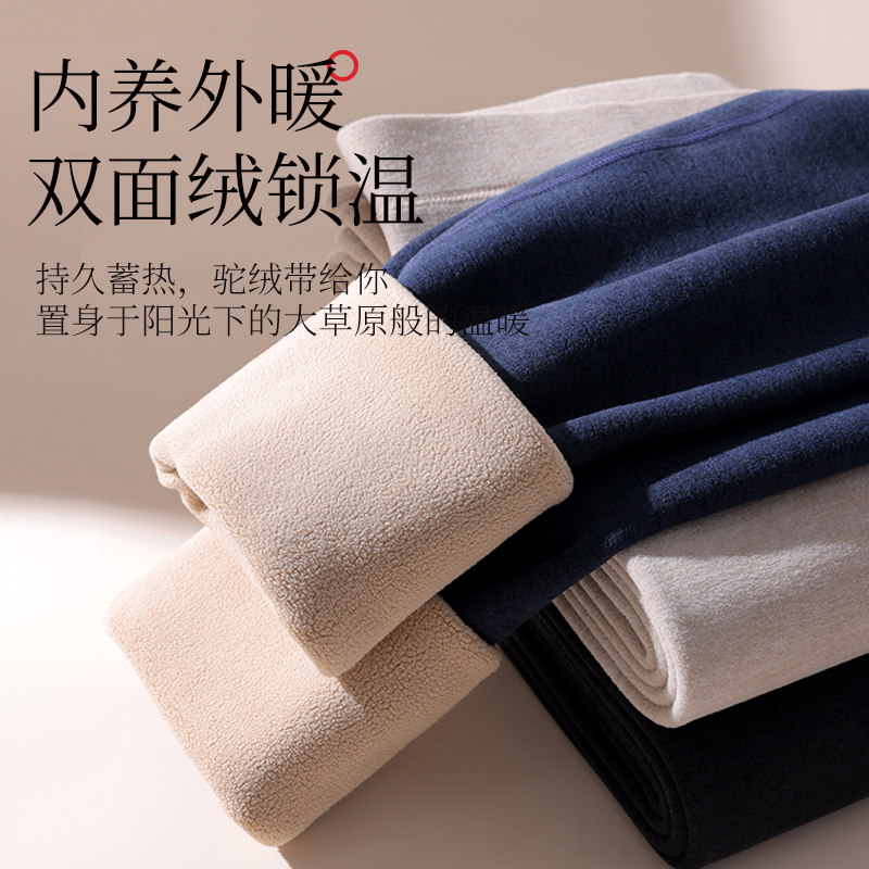 雅鹿驼绒保暖裤男士2025大码棉裤加绒加厚防寒打底裤男款冬季护膝