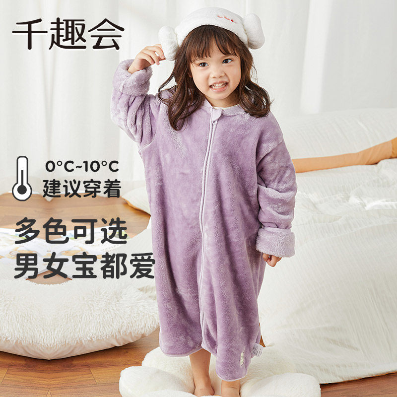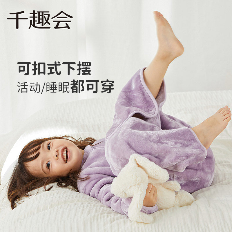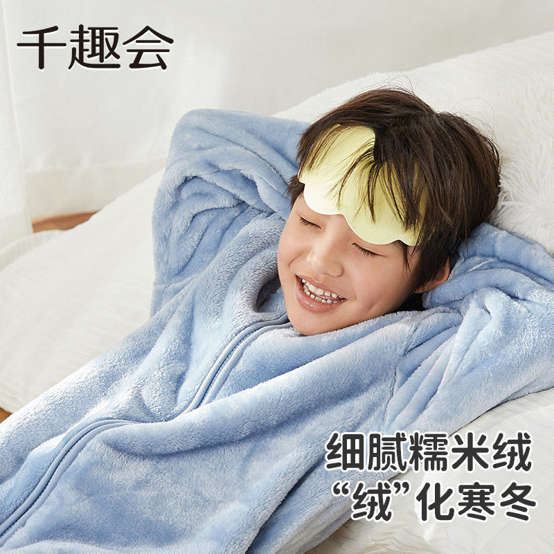 千趣会童装冬季儿童家居服保暖防踢被男女童柔软糯米绒睡袋