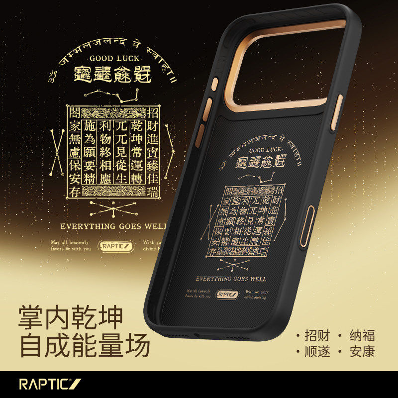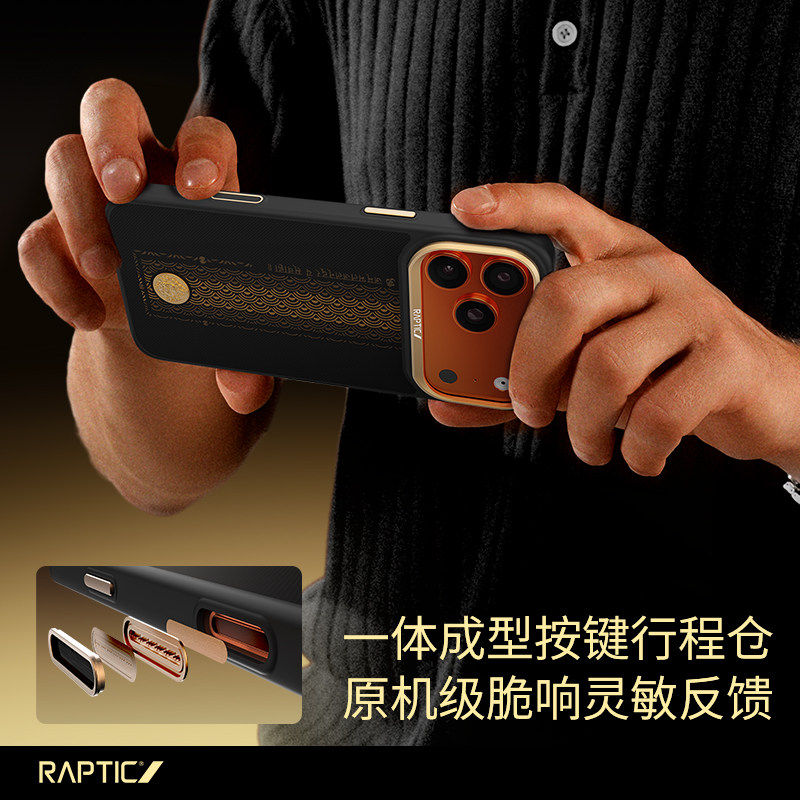 决色raptic顺财运苹果17promax凯夫拉手机壳iPhone17pro防摔磁吸全包带拍照按键芳纶纤维保护壳17por黄财神