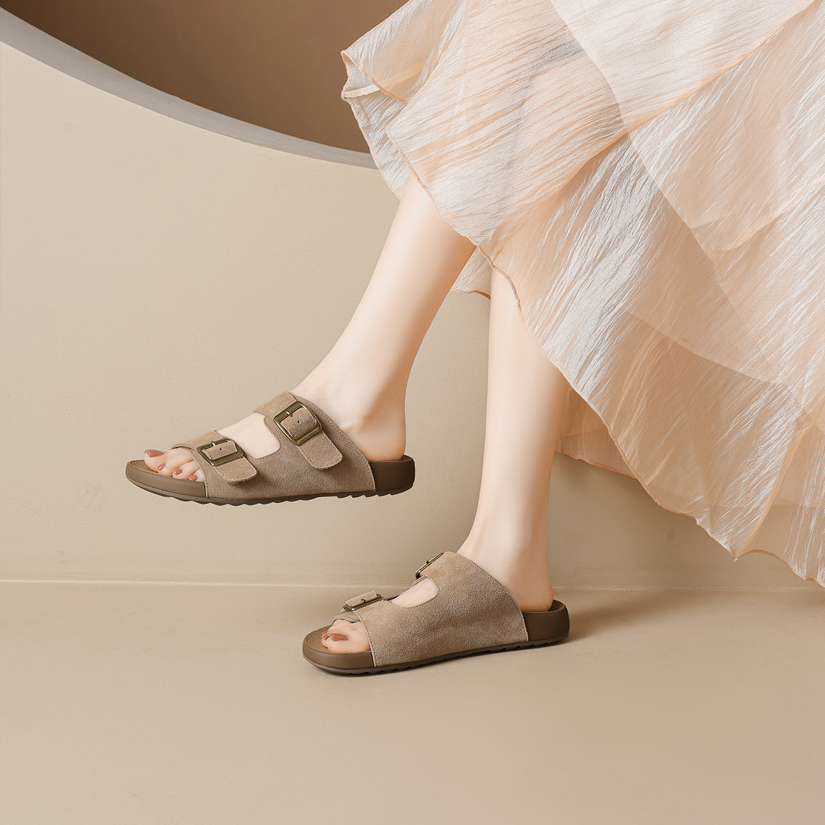 戈美其平底勃肯凉拖鞋女2026夏季新款外穿双扣带软底百搭沙滩凉鞋