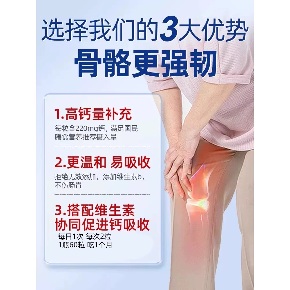 钙片柠檬酸钙中老年人补钙腿抽筋骨质疏松鲨鱼软骨胶片Z24碳酸钙