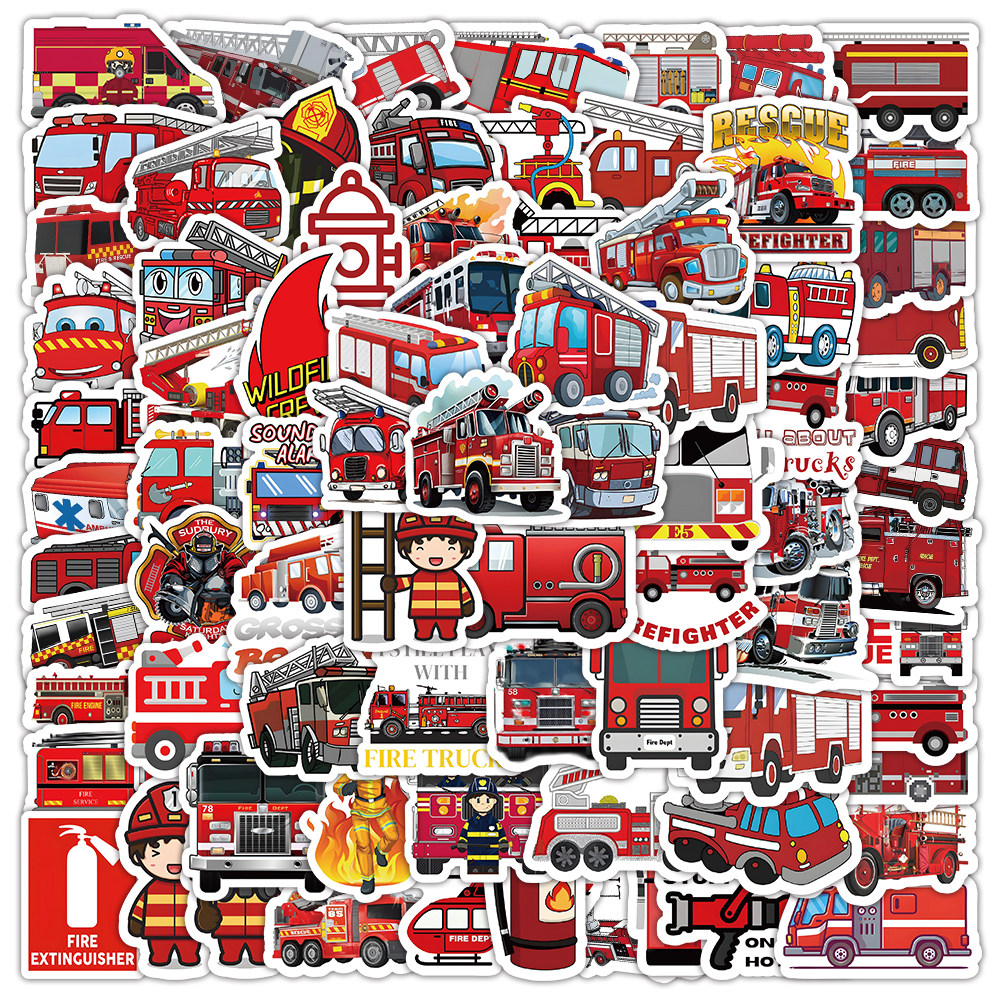 400贴消防车贴纸消防急救交通工具可爱卡通汽车图案装饰手账贴画