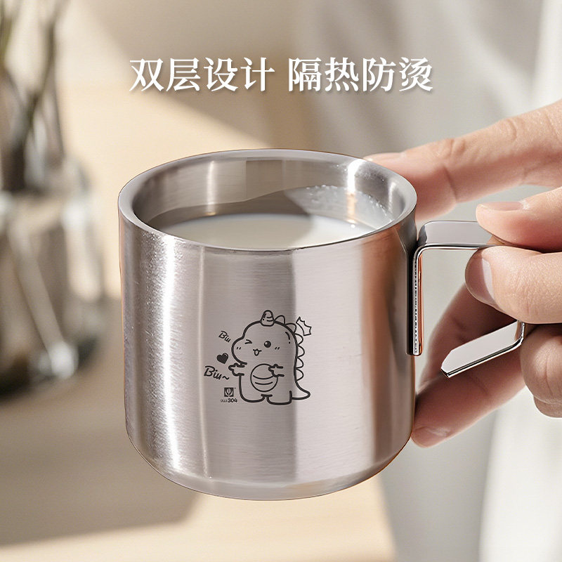 国风不锈钢杯子304食品级宝宝喝水专用杯牛奶杯防摔防烫儿童水杯