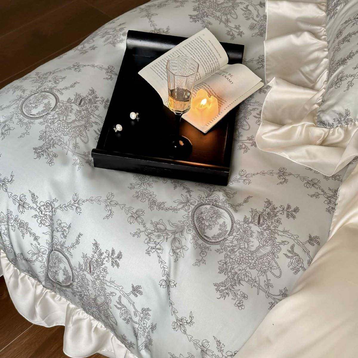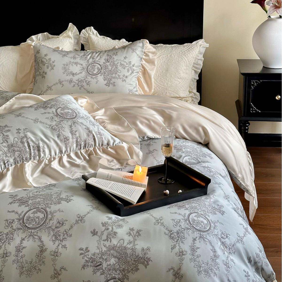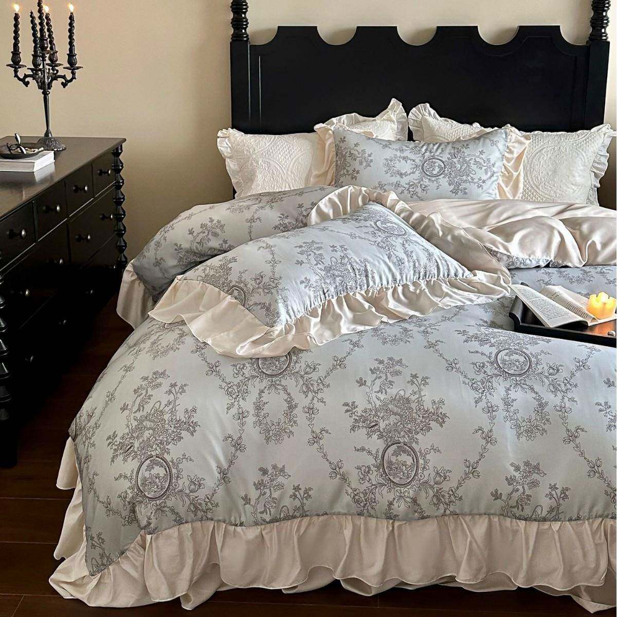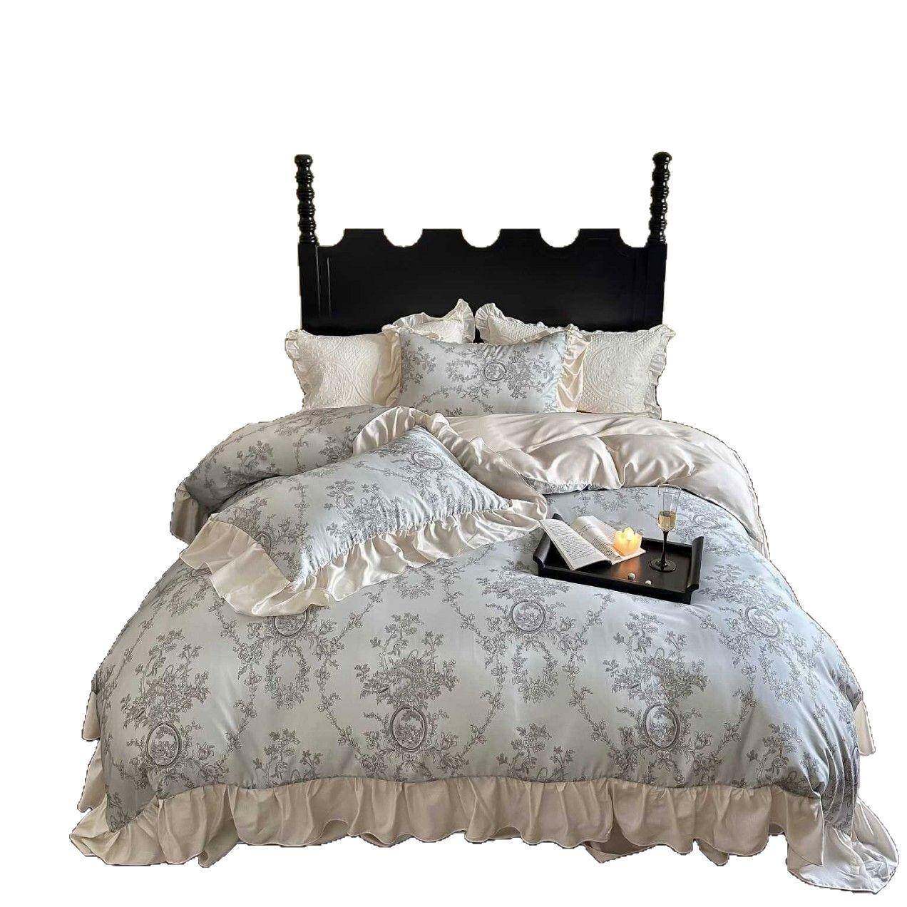 夏季萝蔓法式复古风花边天丝床上四件套凉感丝滑被套床单床裙少女