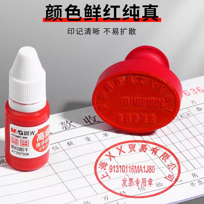 晨光快干印油原子红色印章油印泥速干财务印台补充墨水红印章油办公用品指甲秒干章子盖章大容量50ml红色印油