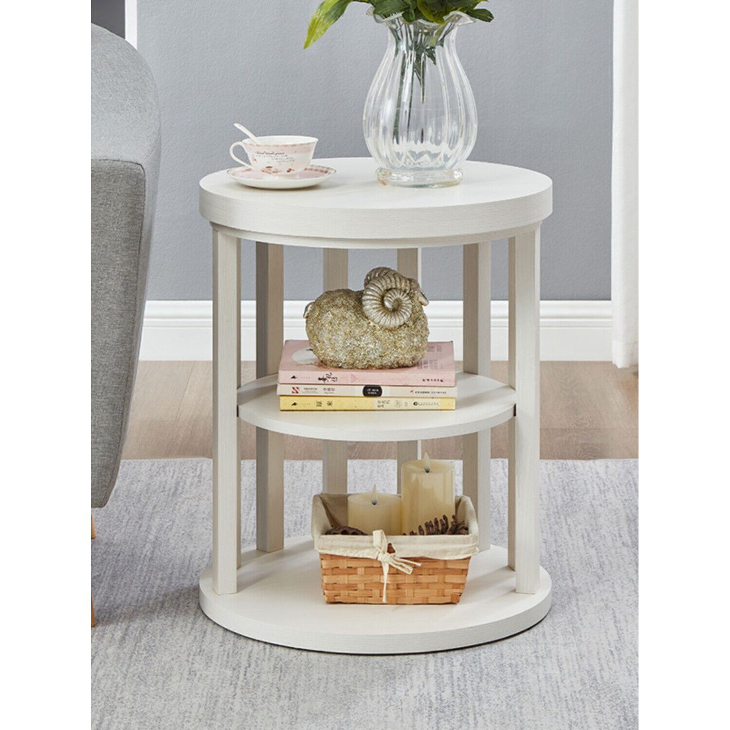 d美式沙发边几茶几床头柜阳台置物架欧式角几家用客厅边柜小圆几