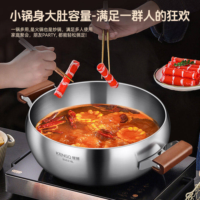 铿锵火锅锅家用316L不锈钢锅新款清汤锅涮锅电磁炉专用汤锅大肚锅