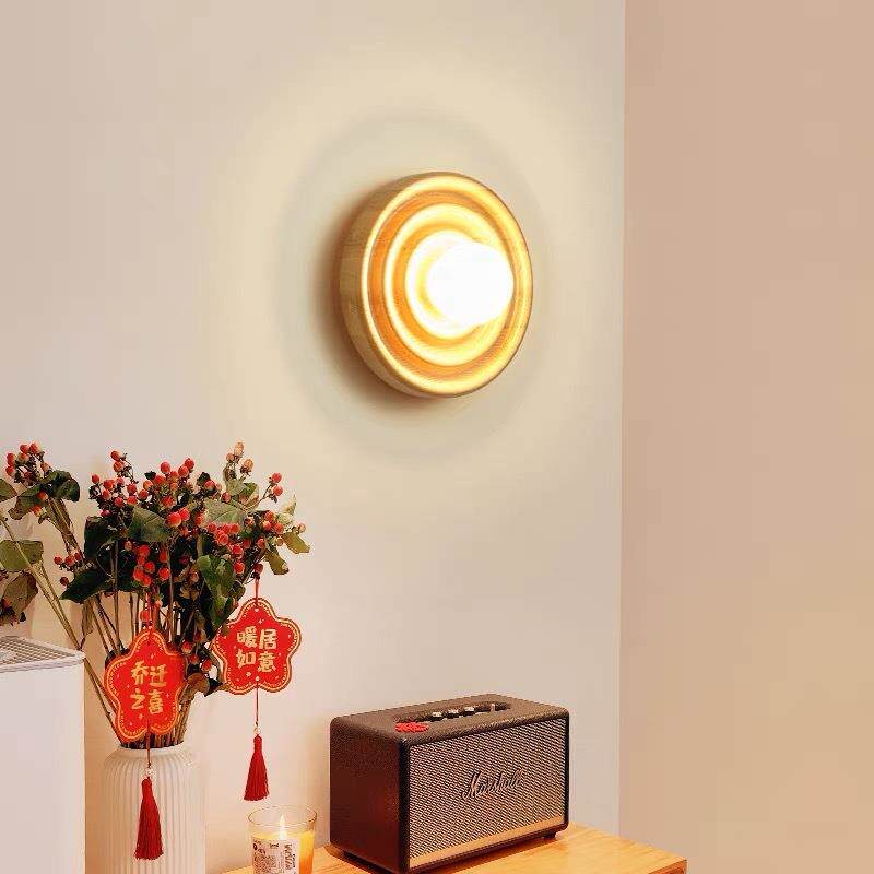 侘寂风原木复古壁灯简约走廊创意过道背景墙灯卧室民宿床头壁灯具