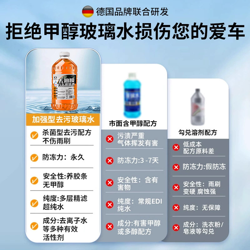 德国原液汽车玻璃水2L装防雨镀膜去油膜虫胶强力清洁除垢冬季防冻